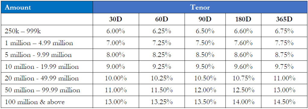 - Tenor starts from 90 days to a maximum period of 1 year.